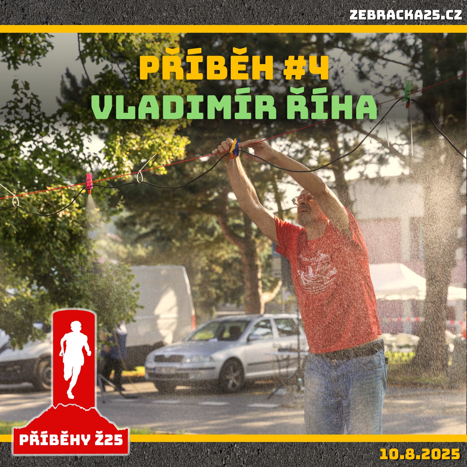 Vladimír Říha, pravidelný účastník Žebrácké pětadvacítky, sportovec tělem i duší, člověk se srdcem na správném místě. Kvůli vleklým zdravotním problémům s vyhřezlou ploténkou nemůže závodit, sportovat atd. Kdo někdy měl tyto problémy ví, o čem je řeč.